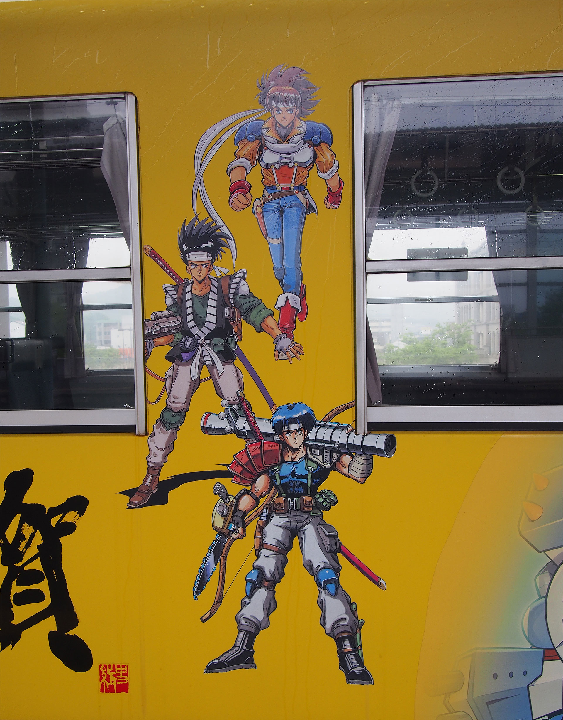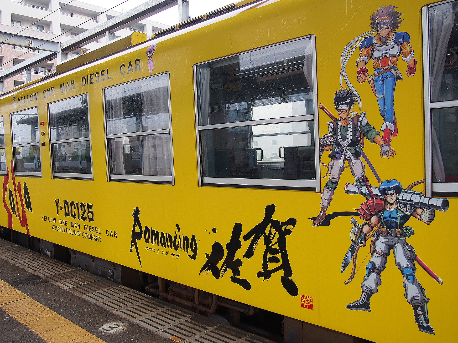 รถไฟขบวนนี้ชื่อโรแมนซิ่งซะกะ (Romancing saga) โดย Kyushu railway เครื่องดีเซล ออกวิ่งเมื่อปีค.ศ. 2015 เพื่อฉลองที่เกมส์ Romancing SaGa มีอายุครบ 25 ปีในปีนั้น
