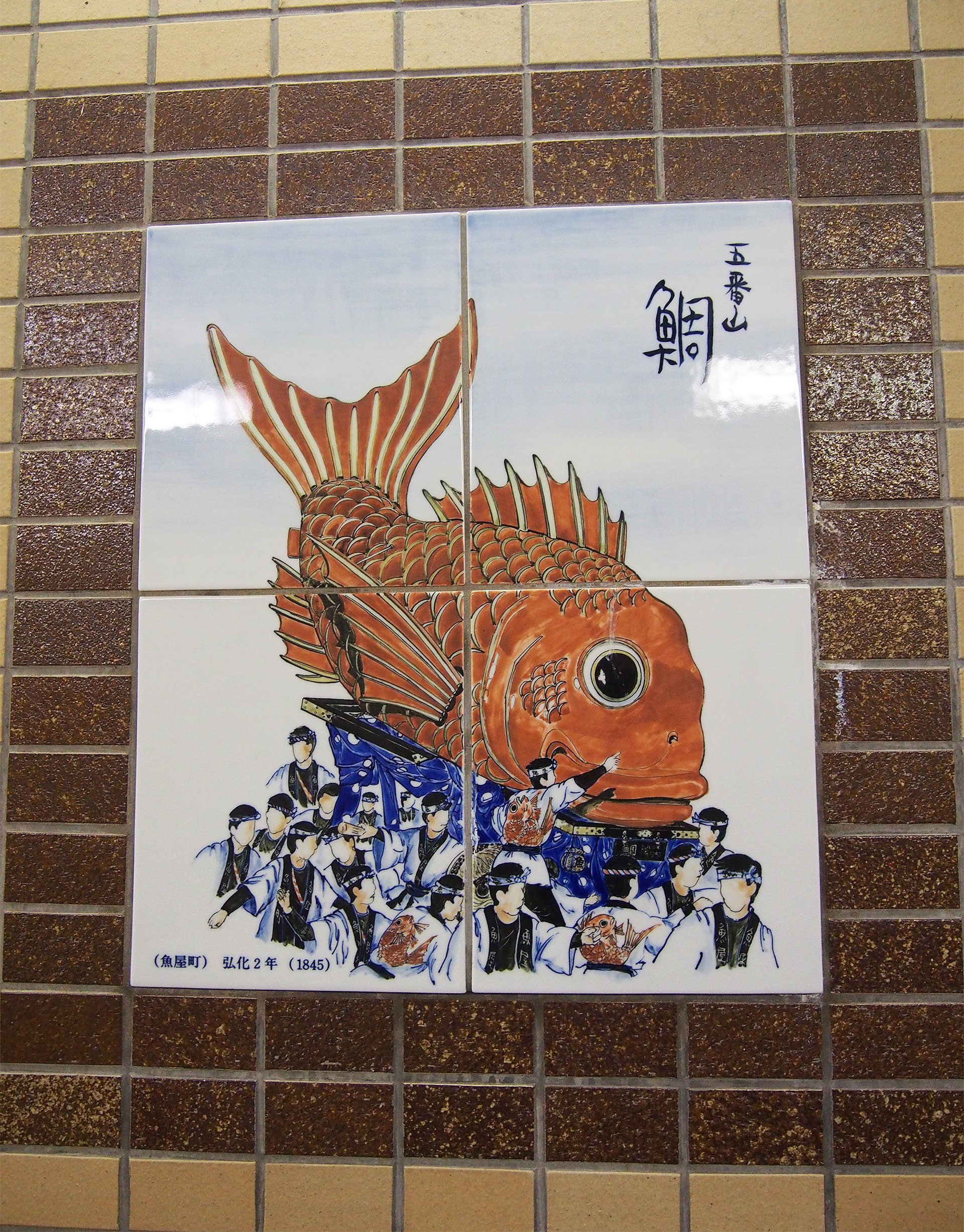 จากสถานีรถไฟต่อรถประจำทาง ก็มาถึงปราสาทคะรัทสึ ต้องเดินลงอุโมงก์ ซึ่งบนผนังตกแต่งด้วยกระเบื้องลายขบวนเกี้ยวในเทศกาลคะรัทสึคุนจิ (Karatsu kunchi) ซึ่งเป็นสัญลักษณ์ของเมืองนี้ สามารถชมของจริงได้ที่ Hikiyama float exhibition hall แต่เมื่อถึงประจำฤดูใบไม้ร่วงราวต้นเดือนพฤศจิกายน จะนำขบวนเกี้ยวทั้ง 14 คัน ที่เป็นตัวแทน 14 ตำบล แห่ไปรอบเมือง ขบวนเกี้ยวนี้เป็นงานช่างฝืมือพื้นบ้านที่สืบทอดมานานหลายร้อยปี ทำจากไม้ และกระดาษเคลือบ นับเป็นวัฒนธรรมท้องถิ่นที่มีความสำคัญ และนำความภูมิใจมาสู่ชาวคะรัทสึ  Address : Hikiyama float exhibition hall 6-33 Nishi jonai, karatsu-shi, saga-ken ค่าธรรมเนียม 300 เยน สำหรับผู้ใหญ่ และ 150 เยนสำหรับเด็ก