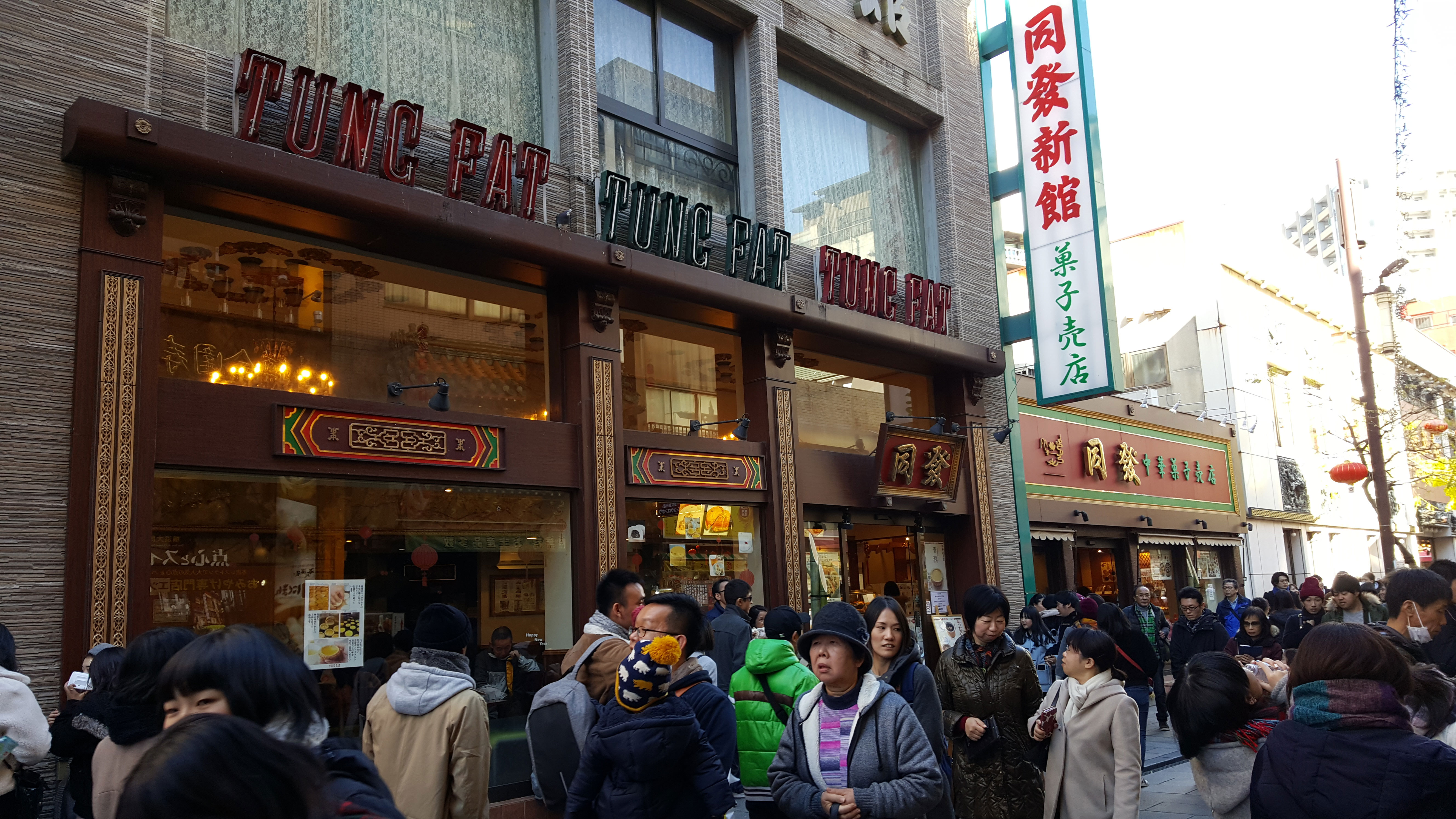 อีกร้านหนึ่งคือตงฟา (Tung Fat) ซึ่งชั้นล่างมีตู้เรียงรายด้วยขนมหวาน โดยเมนูขายดีอันดับหนึ่งคืออันนินโดฟุ (Annin Doufu) หรือพุดดิ้งนมอัลมอนด์ตกแต่งด้วยเมล็ดเก๋ากี๊ ถ้วยละ 370 เยน เป็นขนมที่มีรสชาติคล้ายสะเกะหวานของญี่ปุ่น หรืะอะมะซะเกะ (Amazake) ทั้งนุ่ม เย็น และสดชื่น จึงมีนักกินต่อคิวยาวอีกเหมือนกัน ดังนั้น การเที่ยวญี่ปุ่นให้สนุก จึงต้องยืนรับประทานได้ (ห้ามเดินรับประทาน บางเมืองออกกฎหมายแล้ว) ต้องต่อคิวได้ (ตั้งแต่ 30 นาทีขึ้นไป) และเดินไปยังแหล่งท่องเที่ยวต่างๆ ได้ (ตั้งแต่ 500 เมตรขึ้นไป)